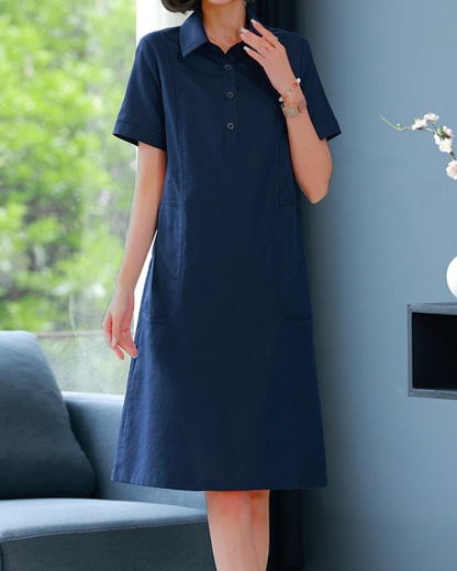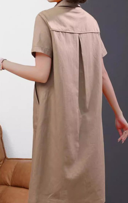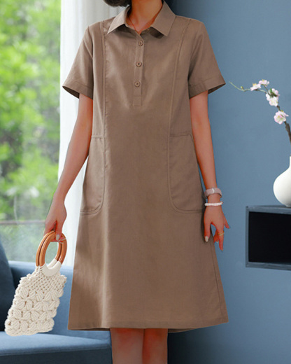 Casual Solid Color Lapel Short-sleeved Linen Shirt Dress