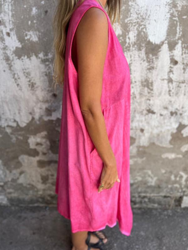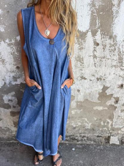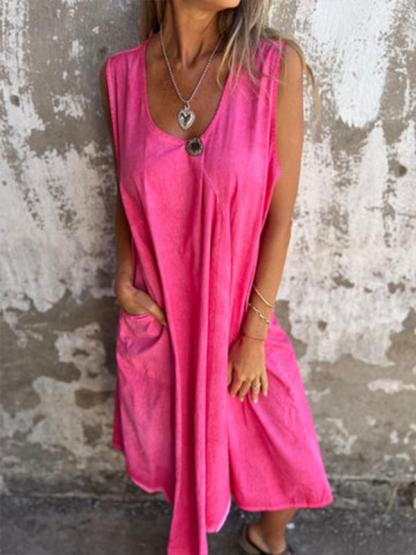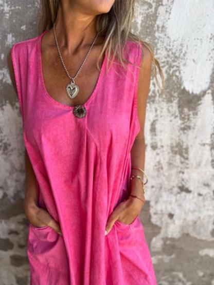 Casual U-neck pocket button dress