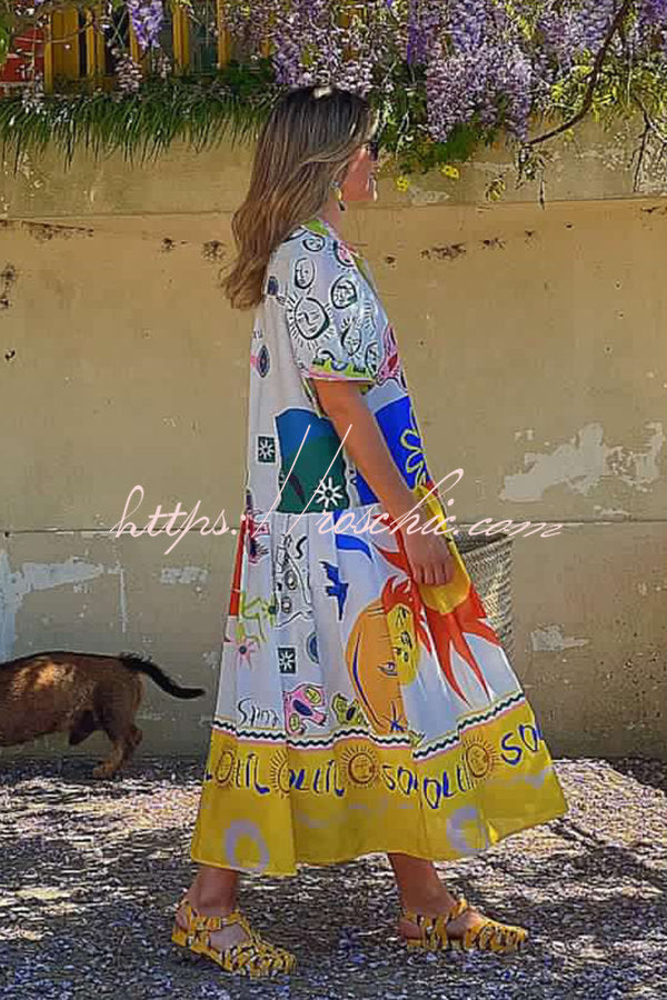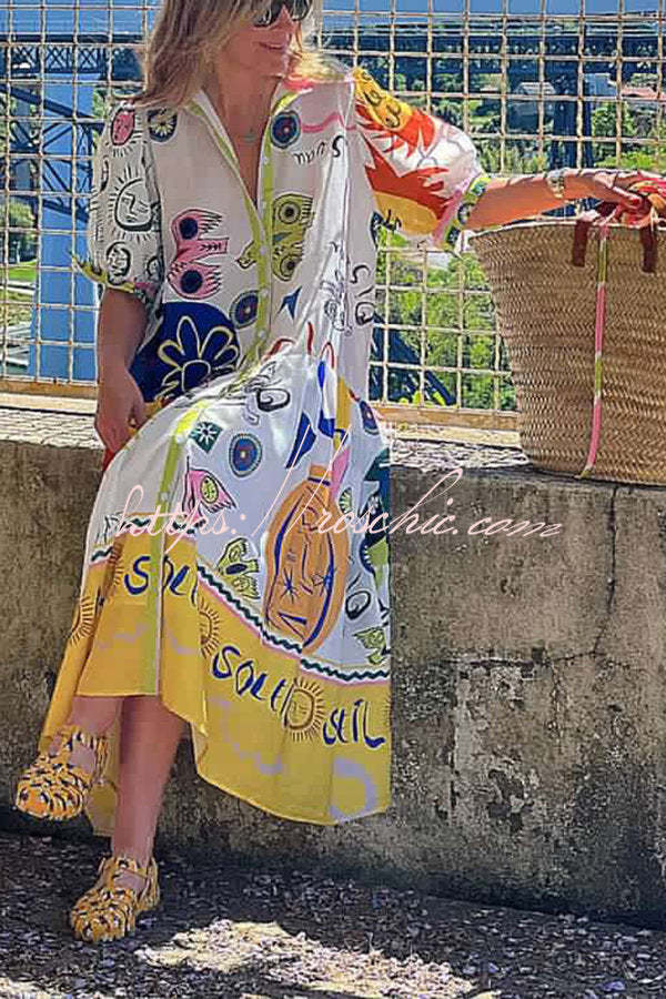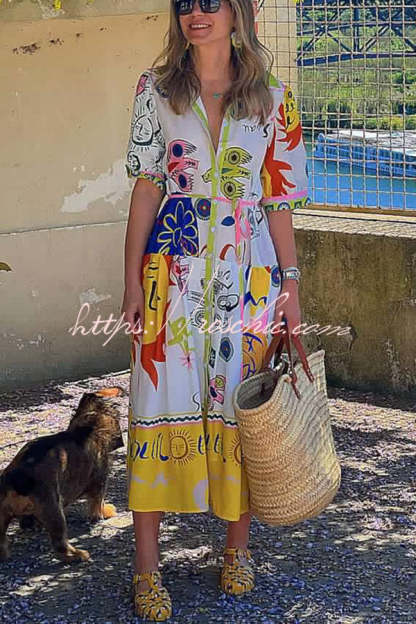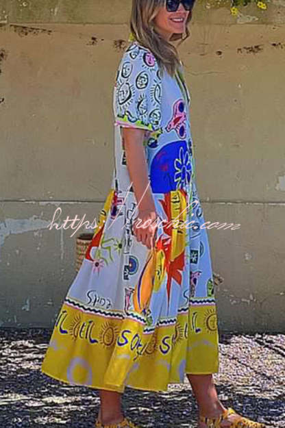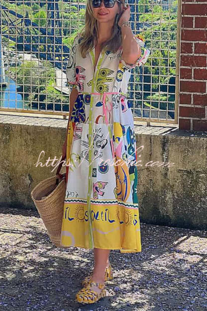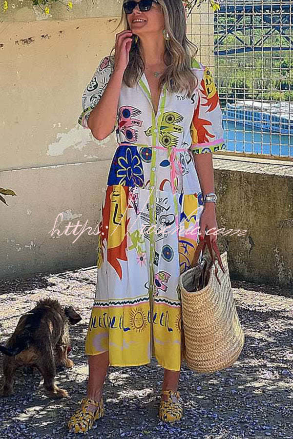 Chasing The Sun Unique Print Pocketed Shirt Midi Dress