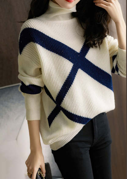 Chic Navy Turtleneck Cozy Wool Sweaters Long Sleeve