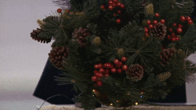 BUILT-IN LIGHTING: Trimmed with red berries, pine cones, snow and 50 Battery-operated UL white LED lights with integrated 6 hours On/18 hours Off timer.