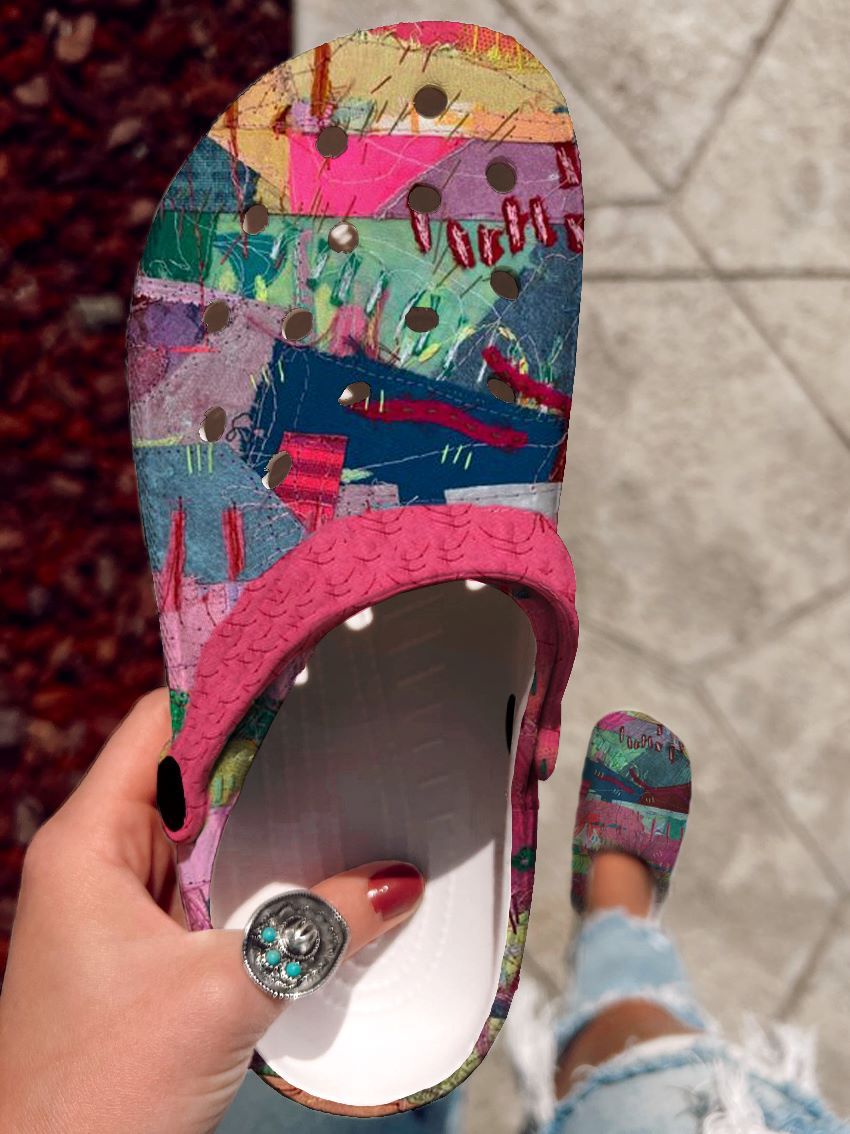 Colorful Colorblocking Pattern Art Print Casual Hole Slippers