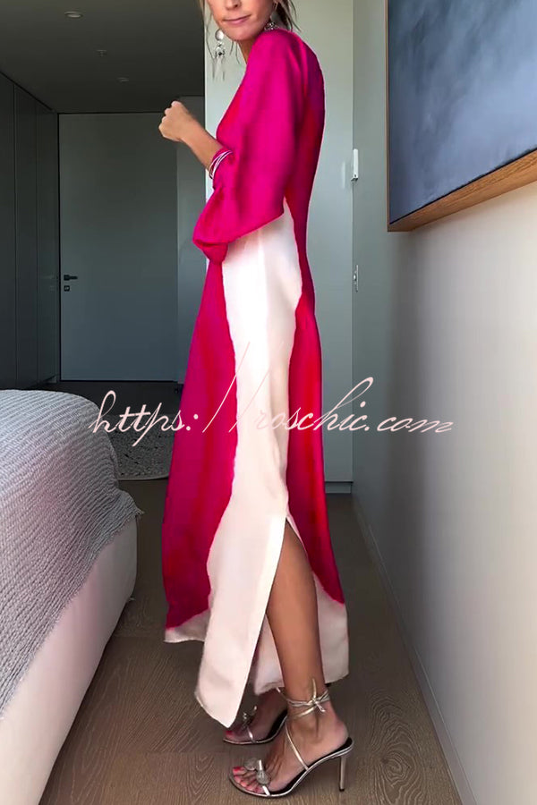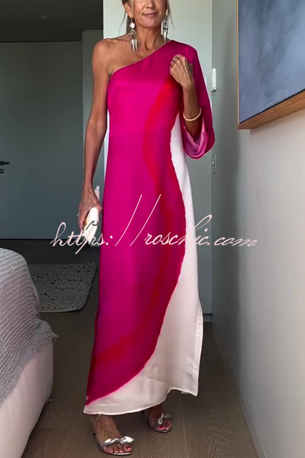 Contrast Print Elegant One-sleeve Slit Maxi Dress