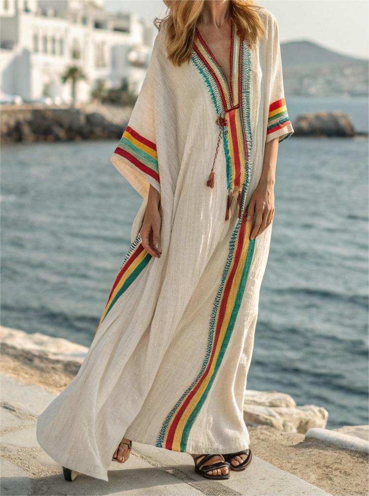 Contton & Linen Long Sleeve Kaftan Maxi Dress