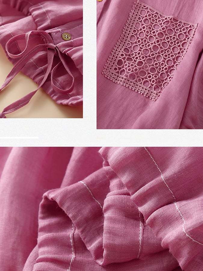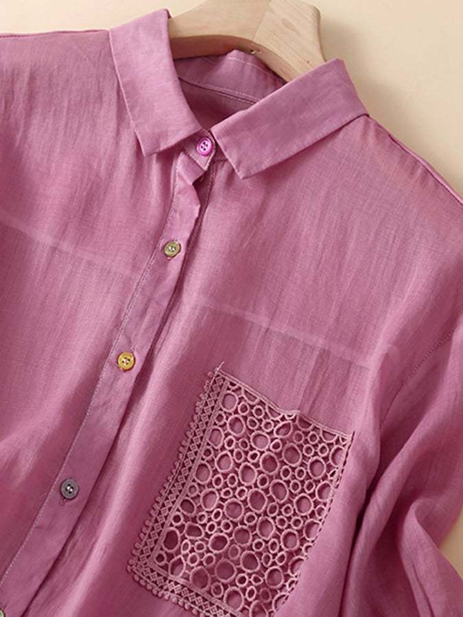 Cotton Linen Hem Drawstring Pocket Casual Shirt