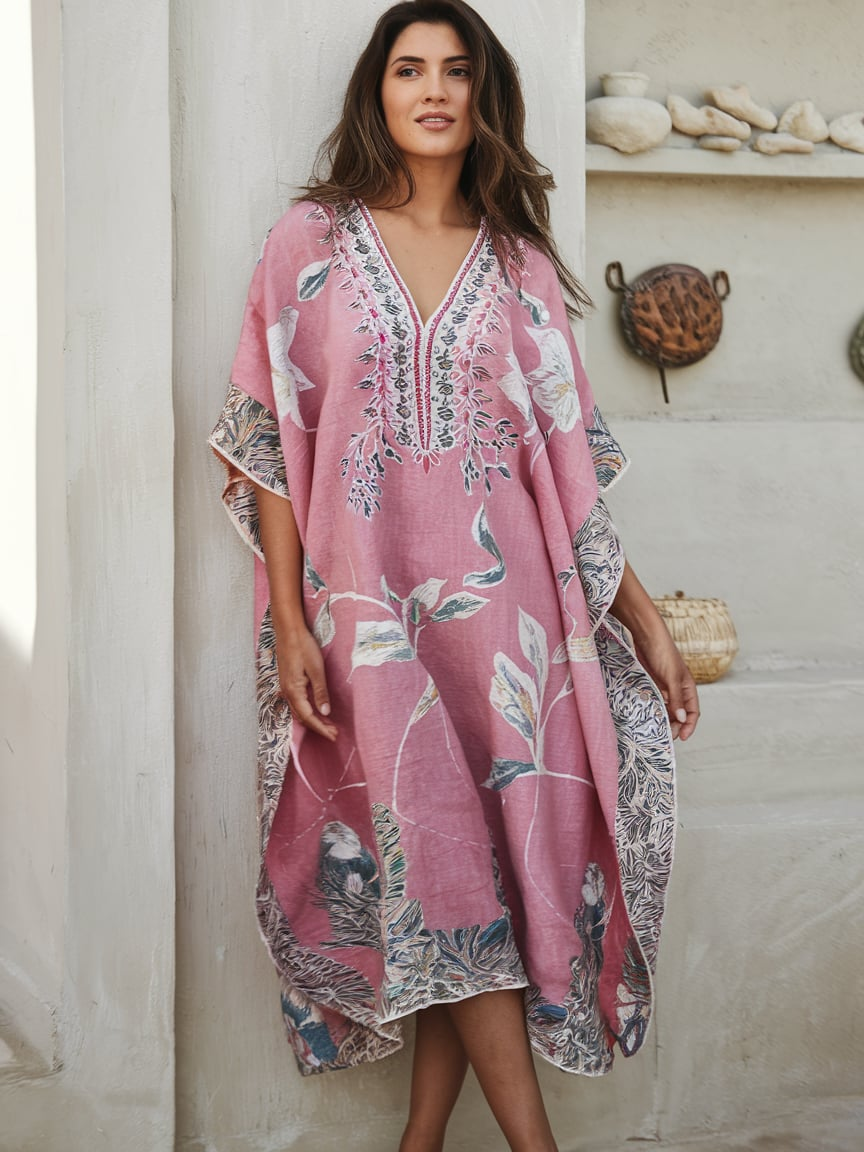 Contton & Linen Long Sleeve Moroccan Style Kaftan Maxi Dress