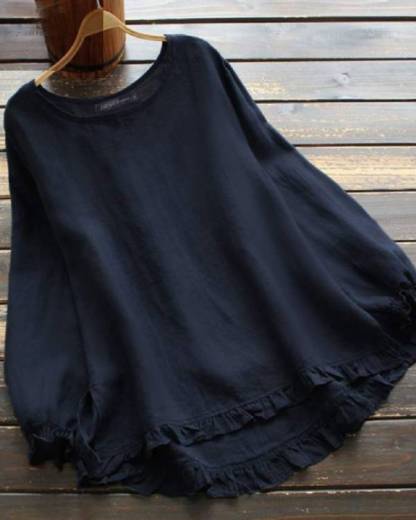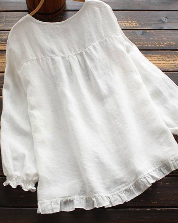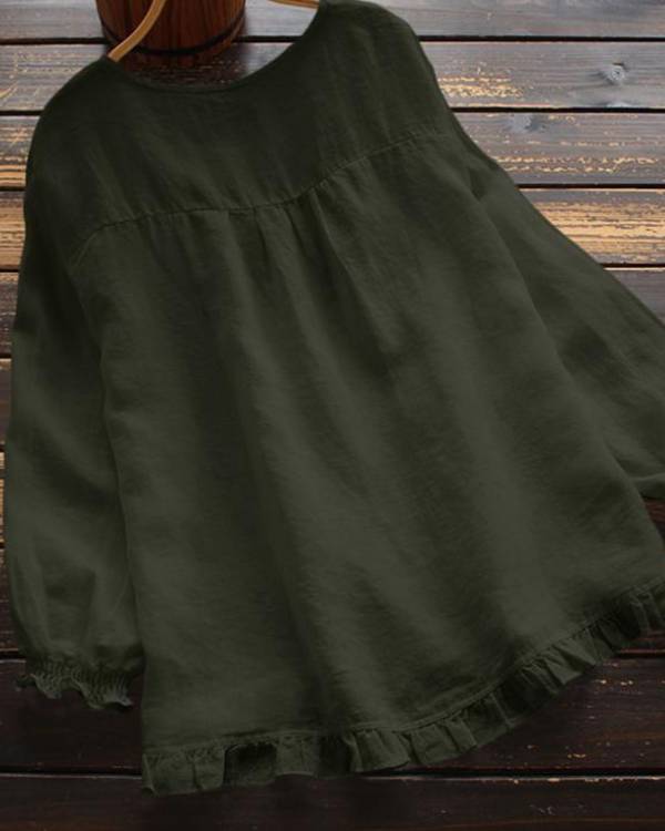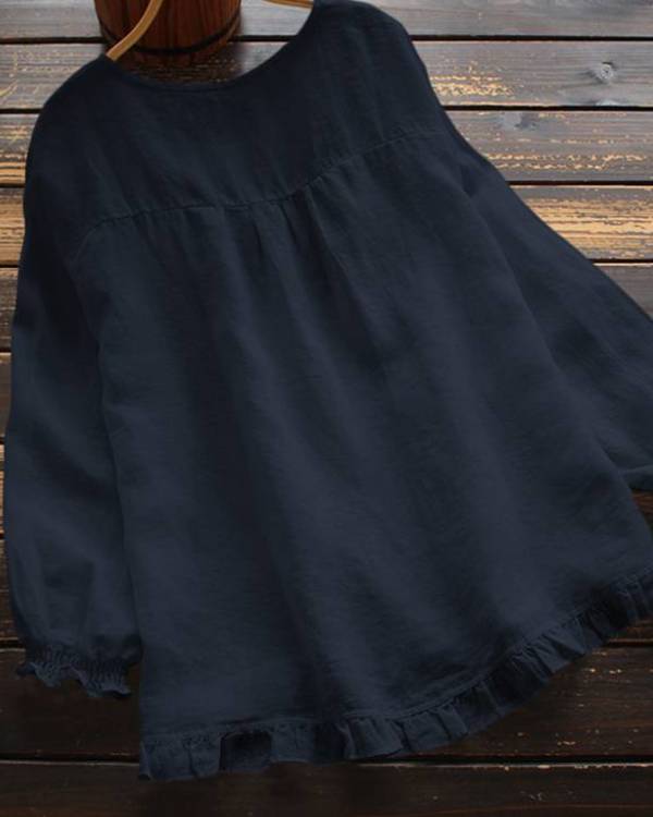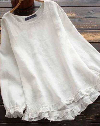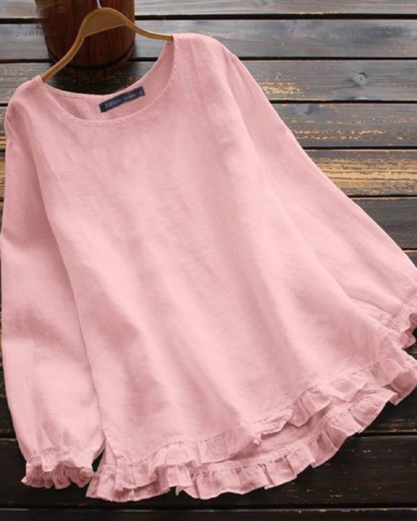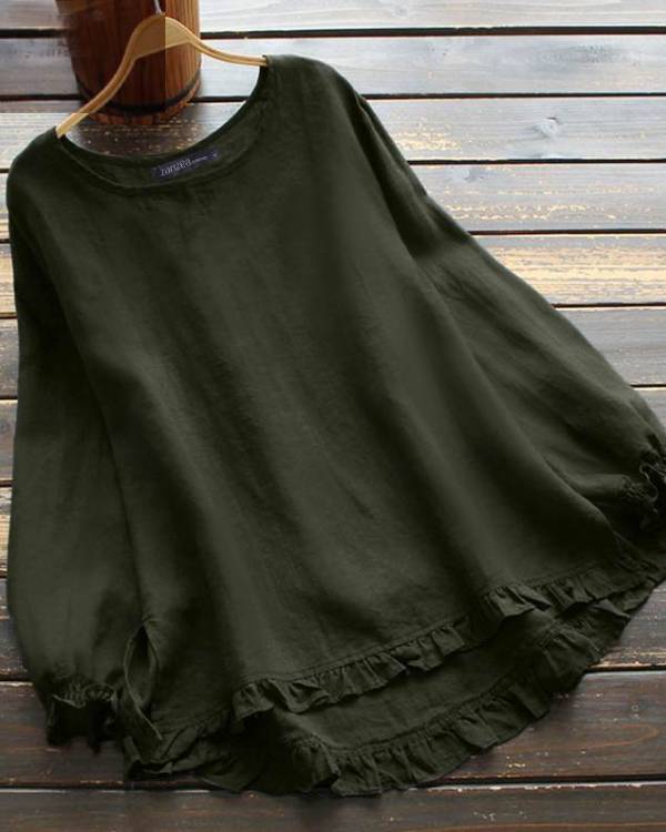 Crew Neck Ruffle Trim Casual Blouse