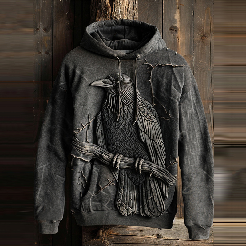 Dark Crow on Branch Printed Hoodie
