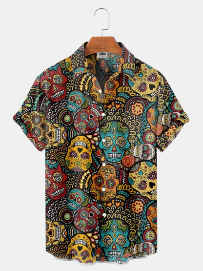 Day Of The Dead Marigold Skull Print Shirt