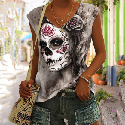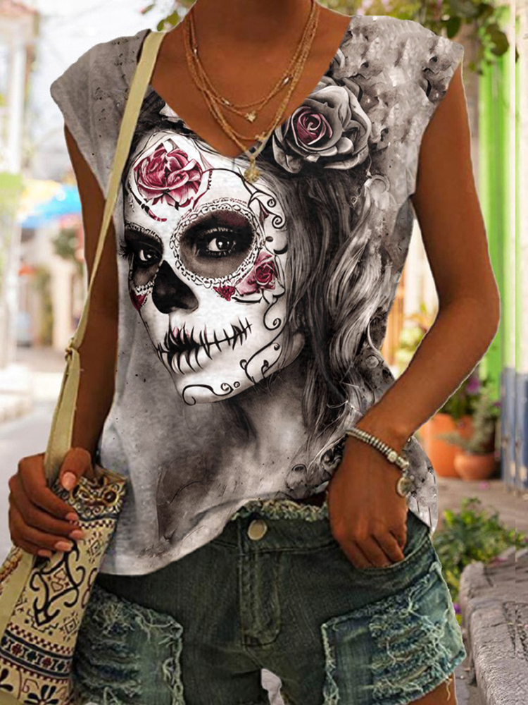 Day Of The Dead Skull Printed Tank Top