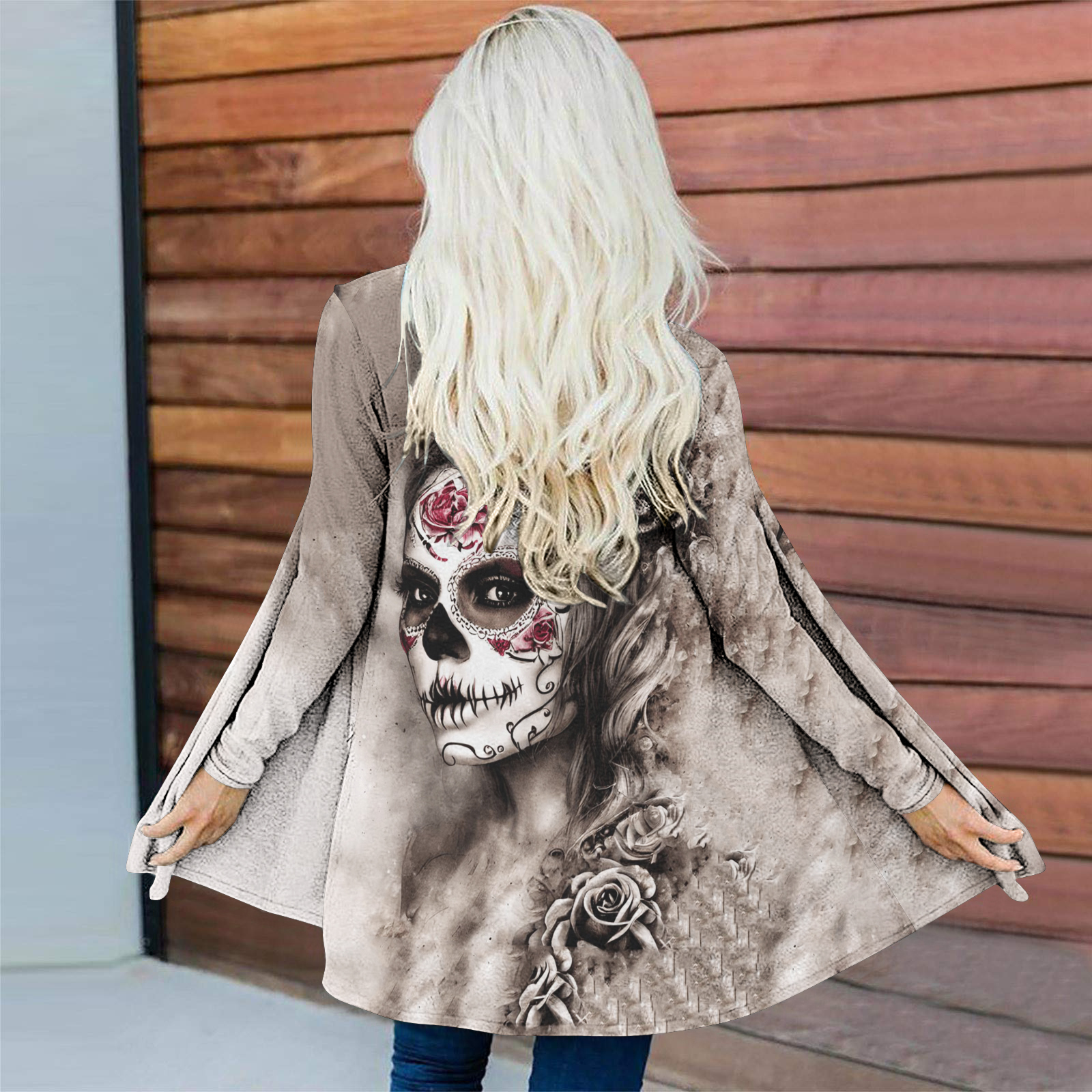 Day of the Dead Skull Women Printed Long Sleeve Cardigan