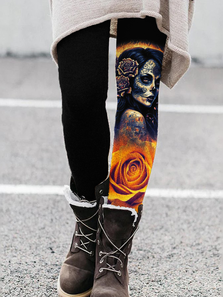 Day of the Dead Sugar Skull Art Contrast Color Leggings