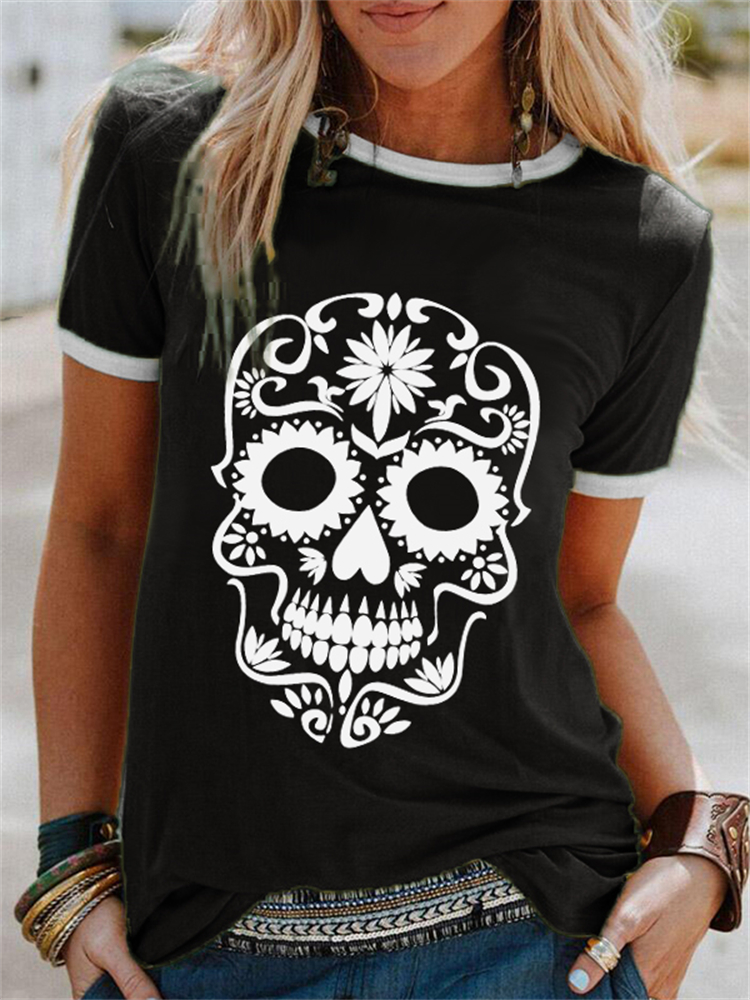Day Of The Dead Sugar Skull Contrast Color T Shirt