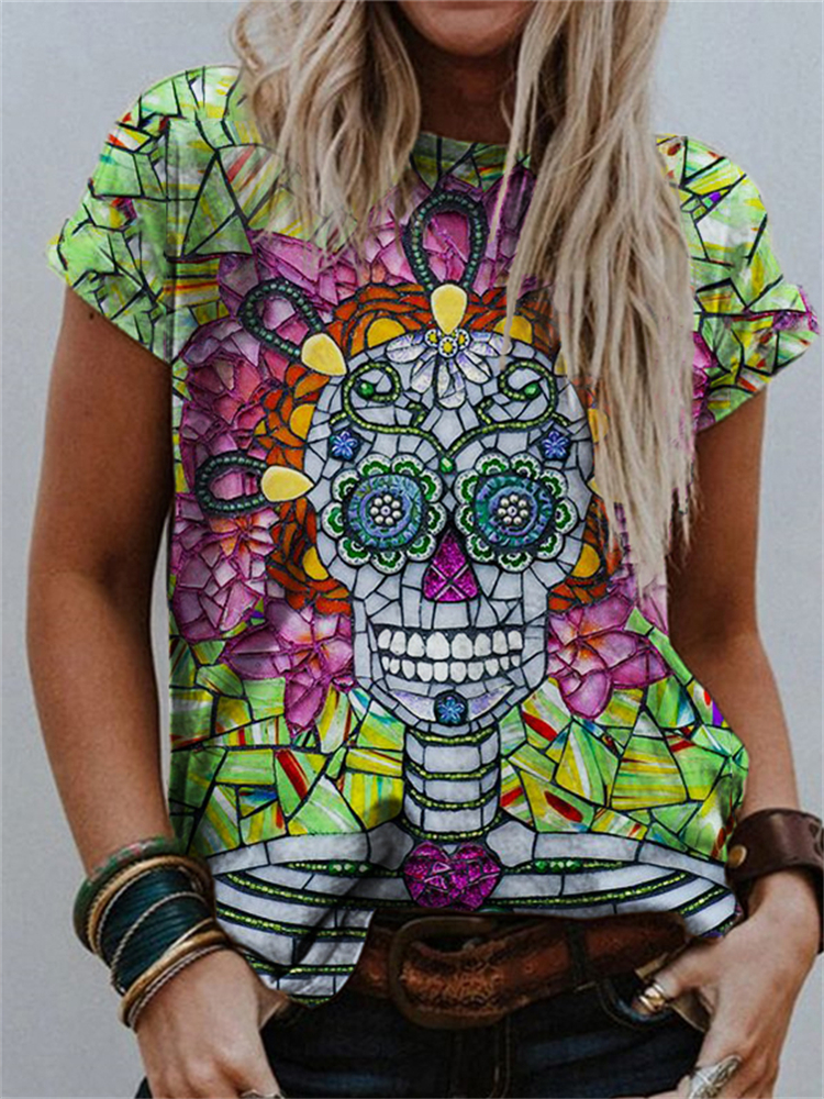 Day Of The Dead Suger Skull Glass Art T Shirt
