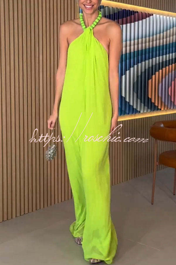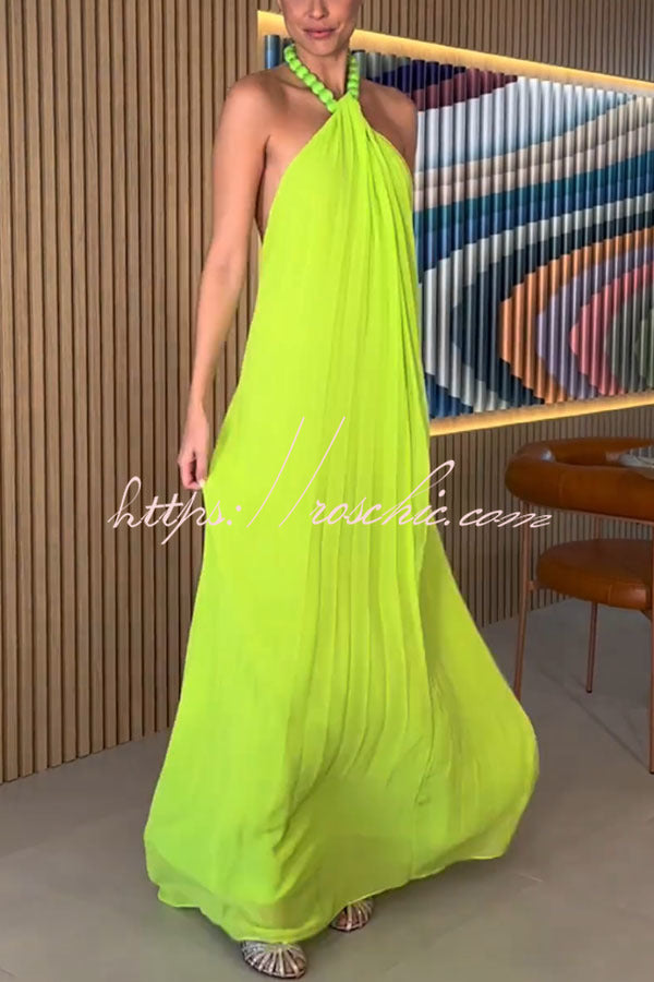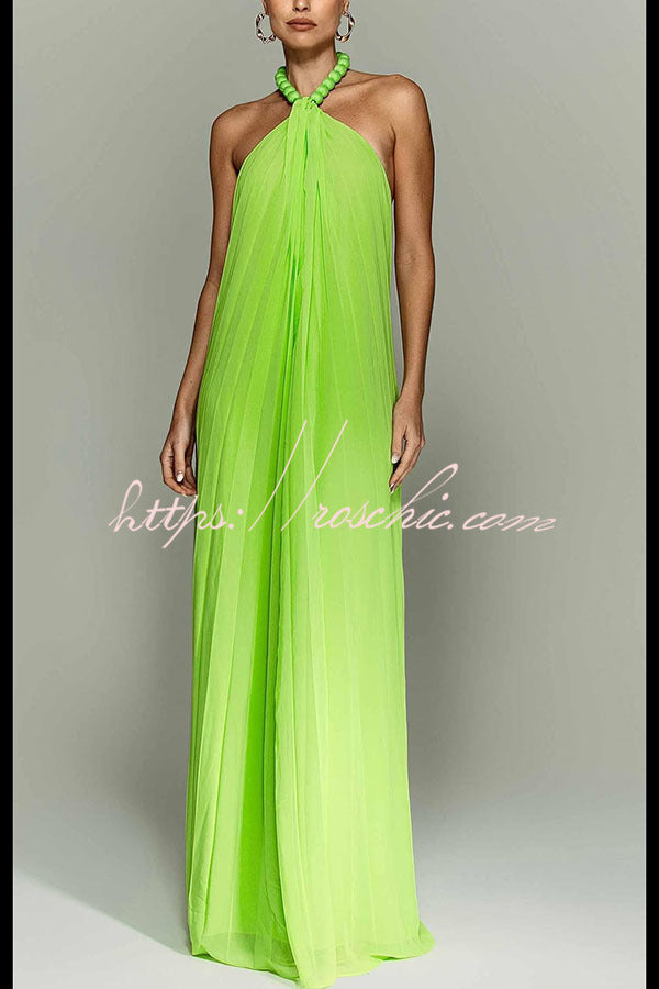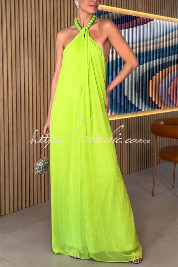 Ellise Chiffon Beads Halter Neck Backless A-line Maxi Dress