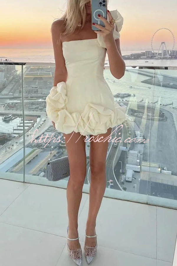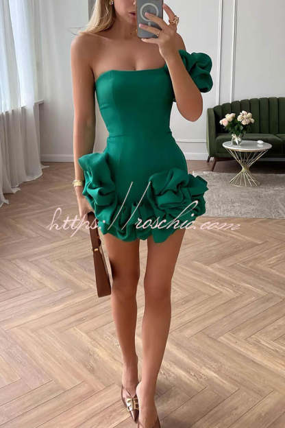 Delightful and Elegant Vibe Off Shoulder Flounce Bottom Mini Dress