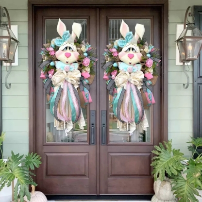 Easter Wreath for Front Door - Easter Bunny