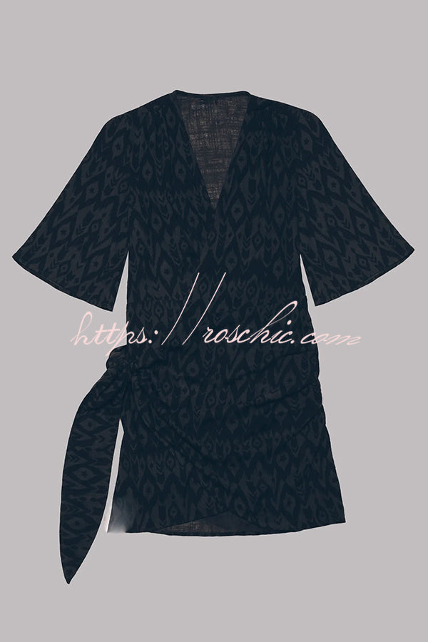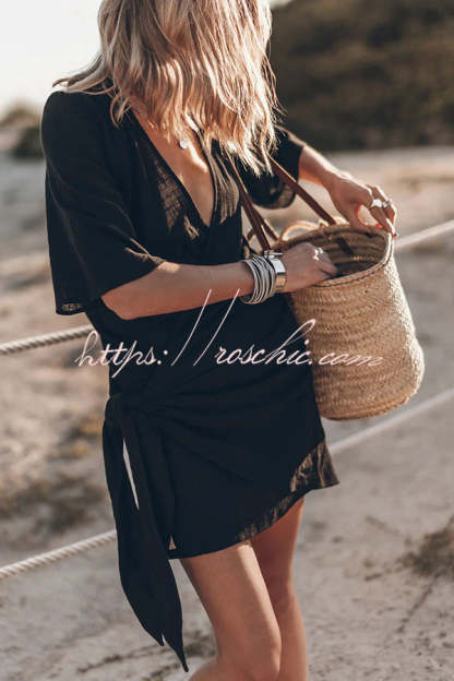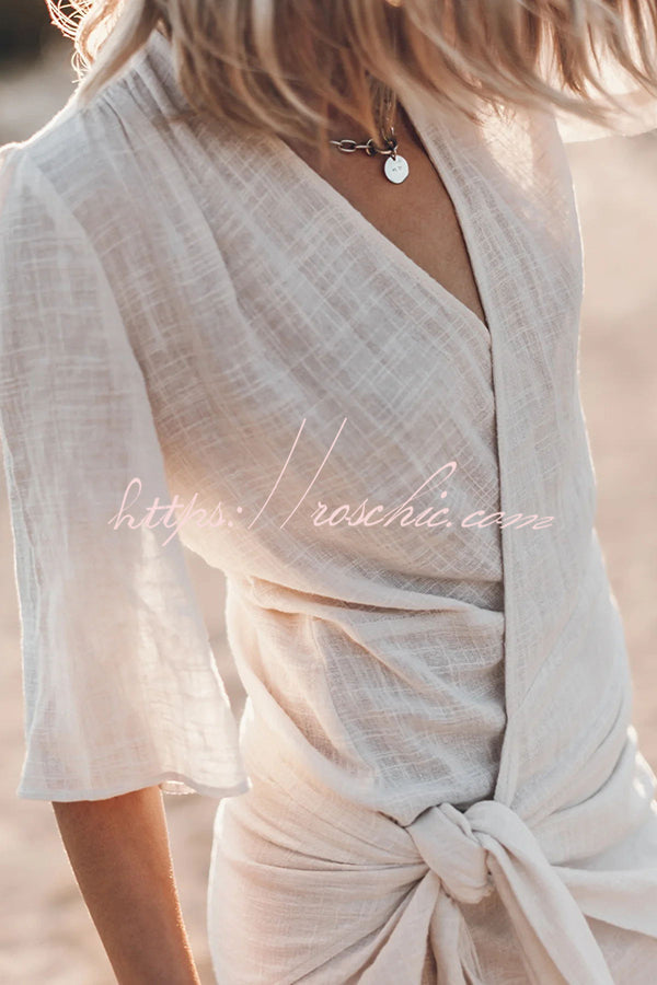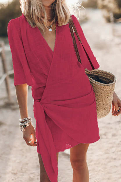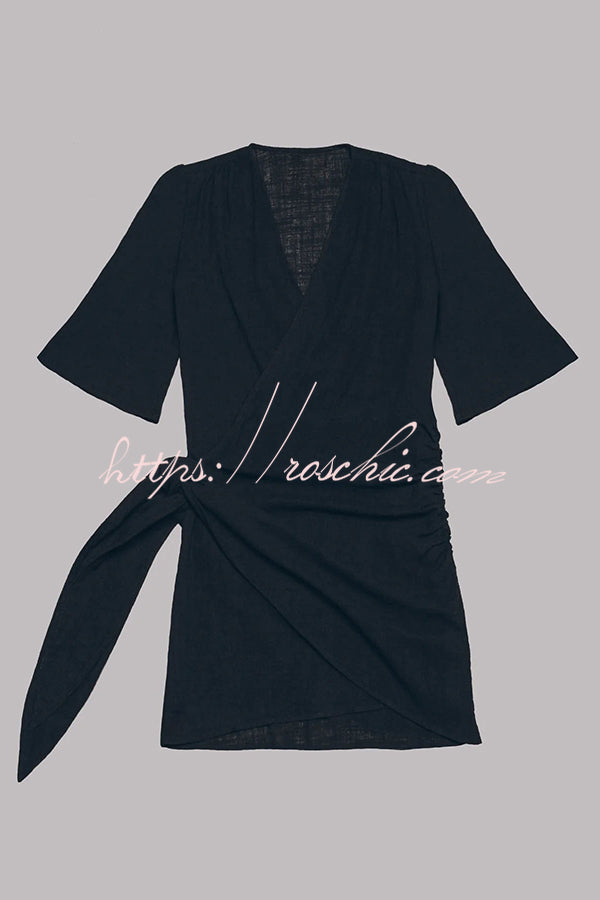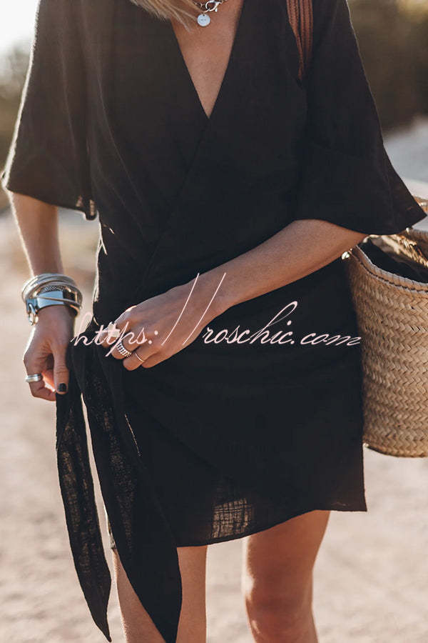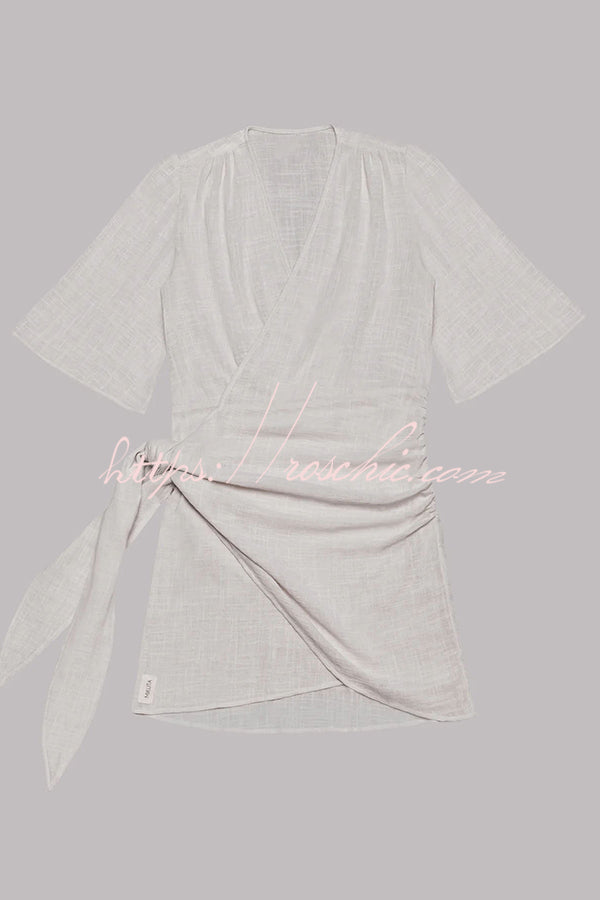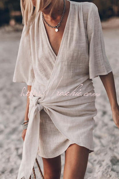 Easy Breezy Cotton Linen Blend Knotted Wrap Mini Dress