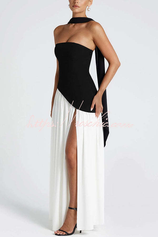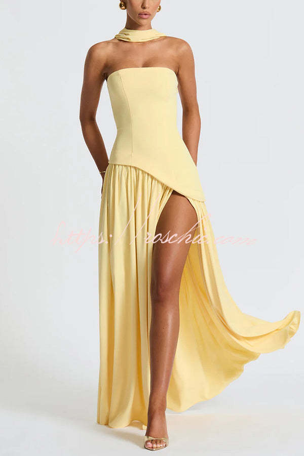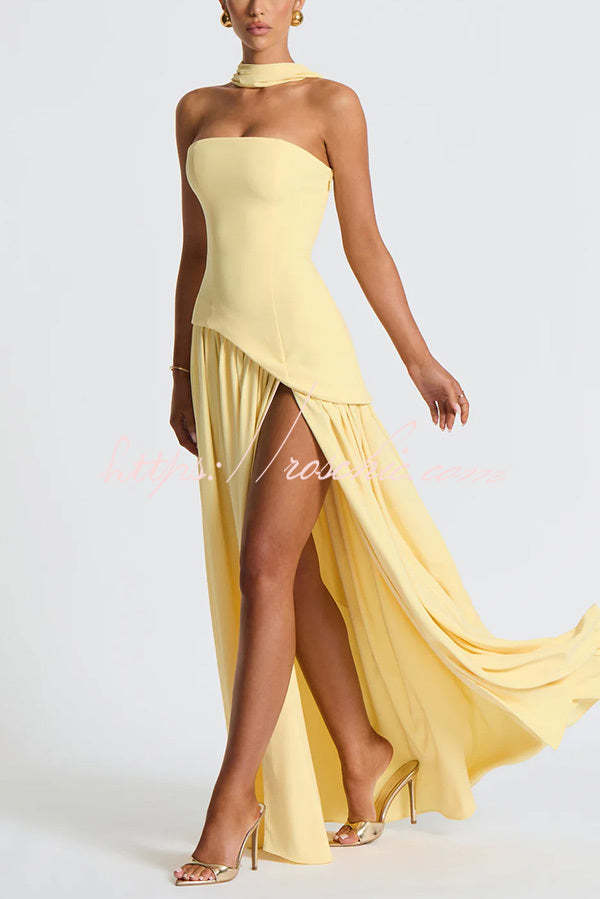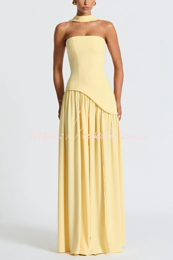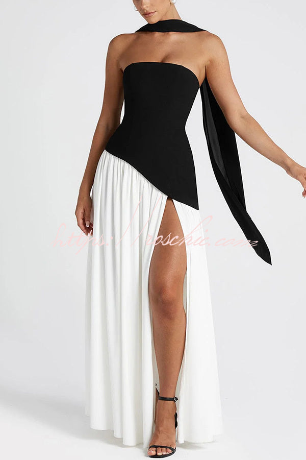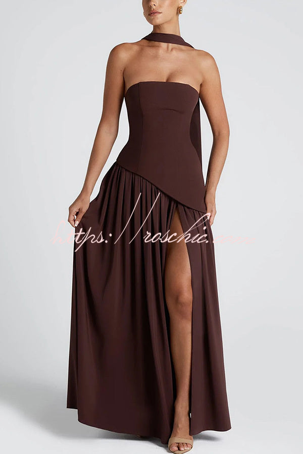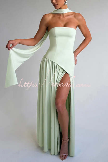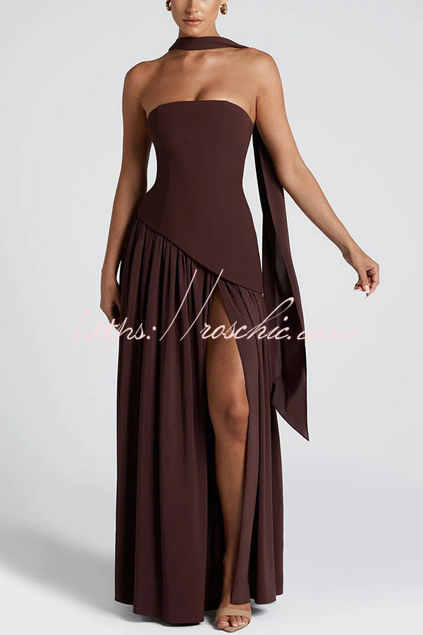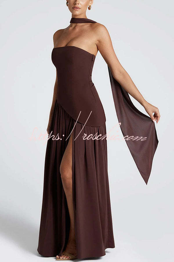 Elegant Off Shopulder Chiffon Pleated Hem Scarf Slit Maxi Dress