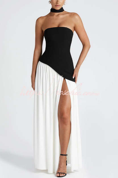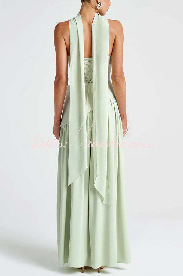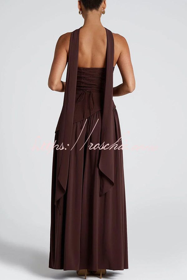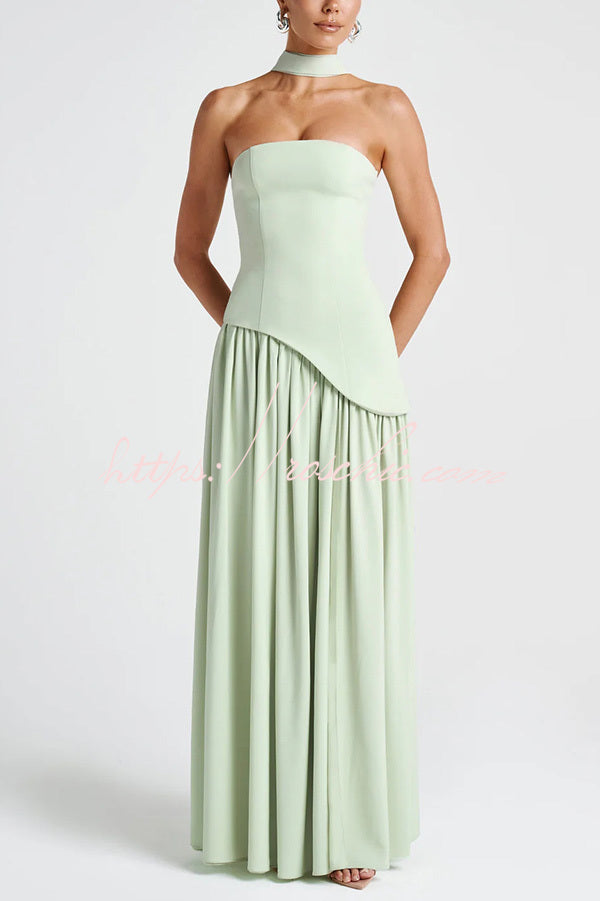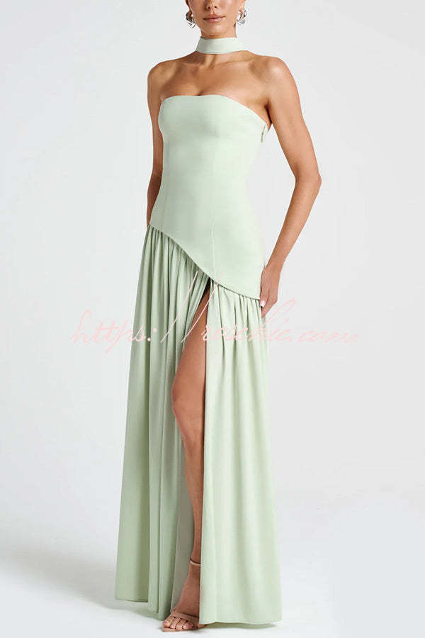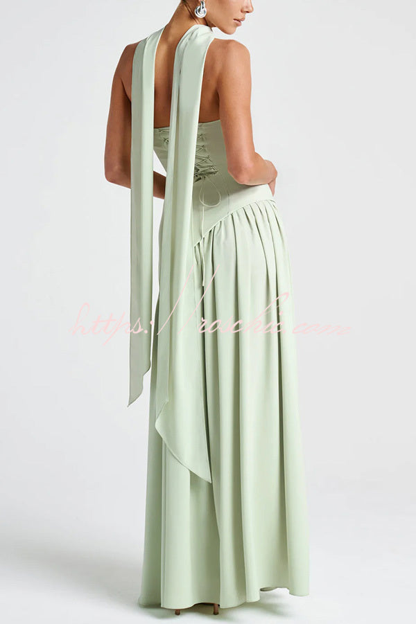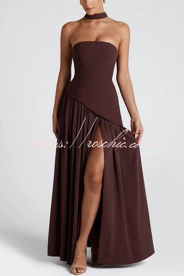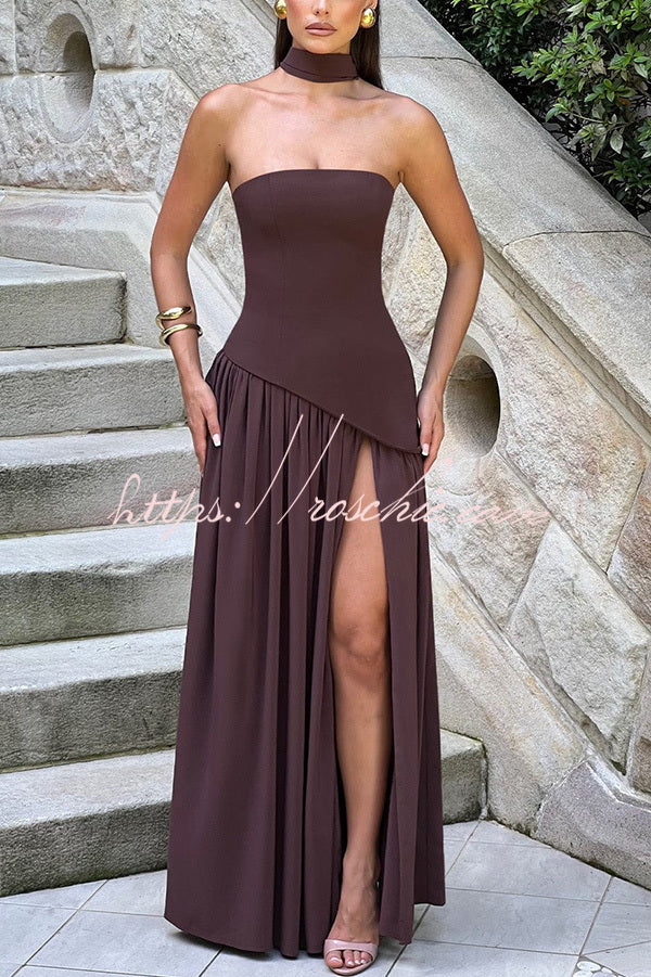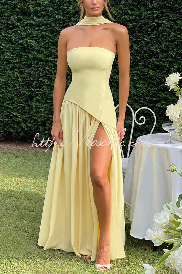 Elegant Off Shopulder Chiffon Pleated Hem Scarf Slit Maxi Dress