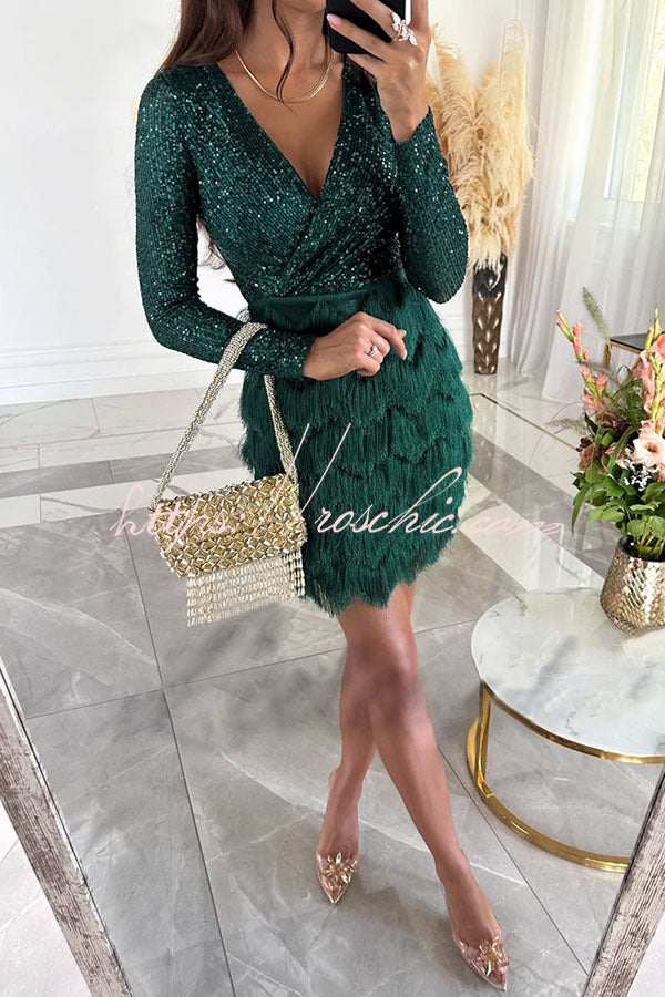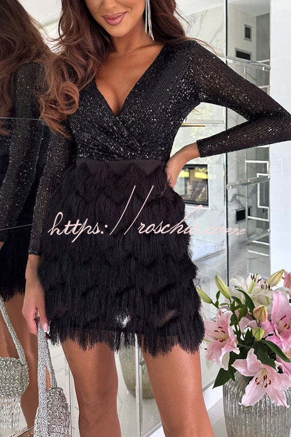 Spinning on The Dance Floor Sequin Patchwork Tiered Fringe Mini Dress