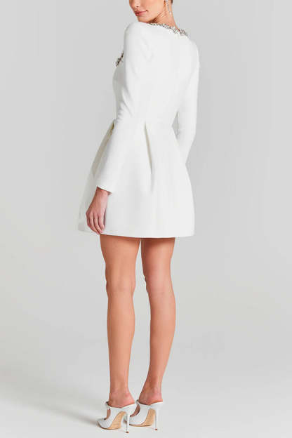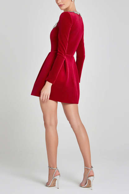 Endless Celebration Velvet Jewel Embellished Trim Long Sleeve Pocketed Mini Dress