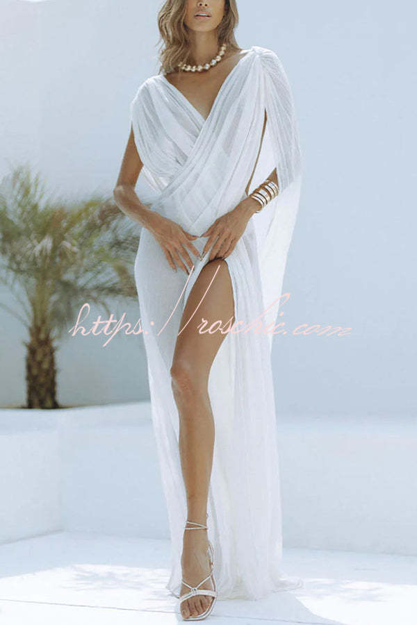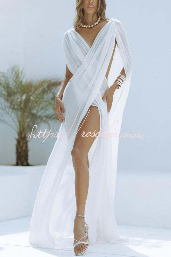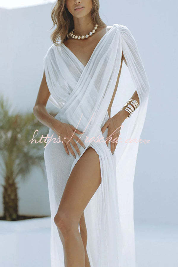 Effortlessly wrapping around the feminine figure, the sheer dress will help you look like a true Greek goddess. Paired with strappy heels and statement jewelry, you can enjoy your resort vacation to the fullest.