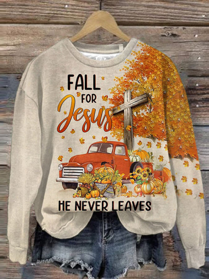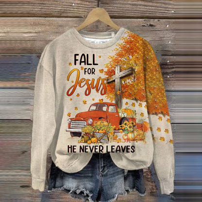 Fall For Jesus He Never Leaves Print Sweatshirt