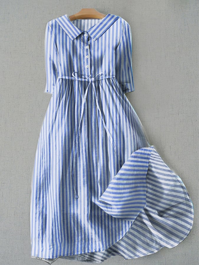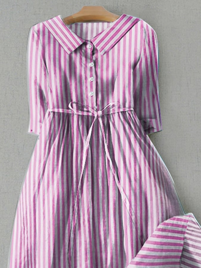 Fashion Casual Cotton Stripes With Pocket Lace Dresses