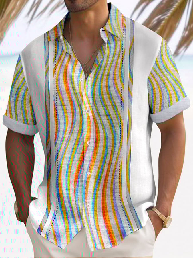 Fashion Casual Holiday Color Contrast Print Short-Sleeved Shirt