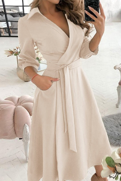 Fashion Elegant Print Solid Patchwork Frenulum V Neck A Line Dresses(10 Colors)