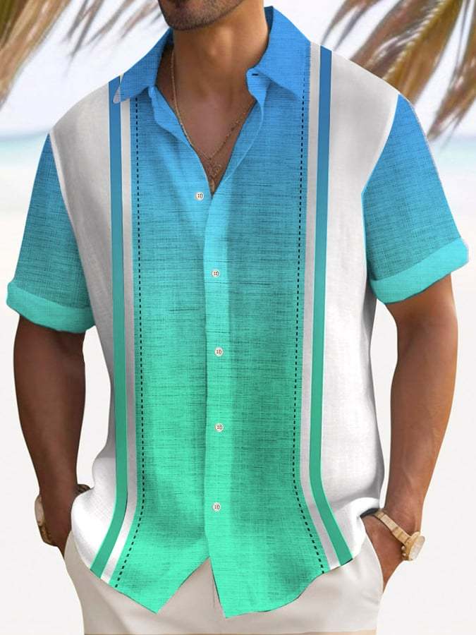Fashion Holiday Contrast Printed Men's Short Sleeve Shirt