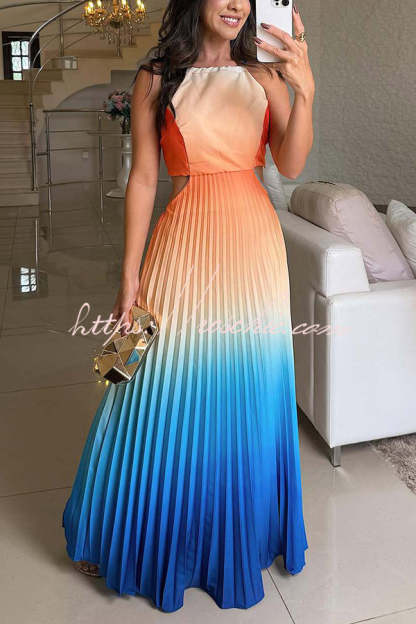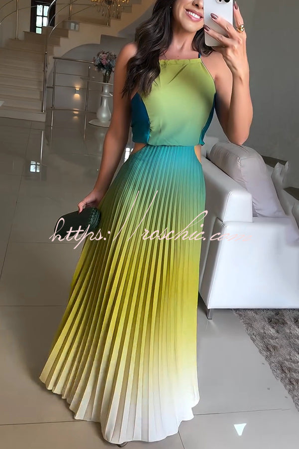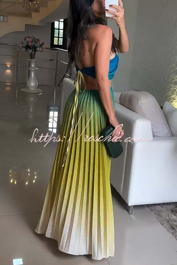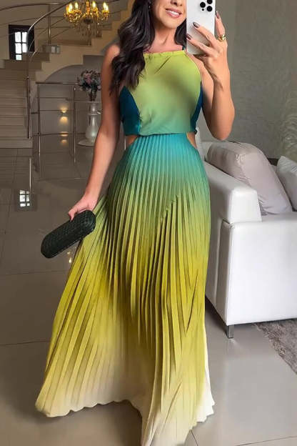 Fashionable Backless Tie Elegant Gradient Pleated Maxi Dress