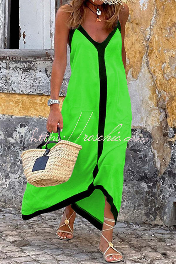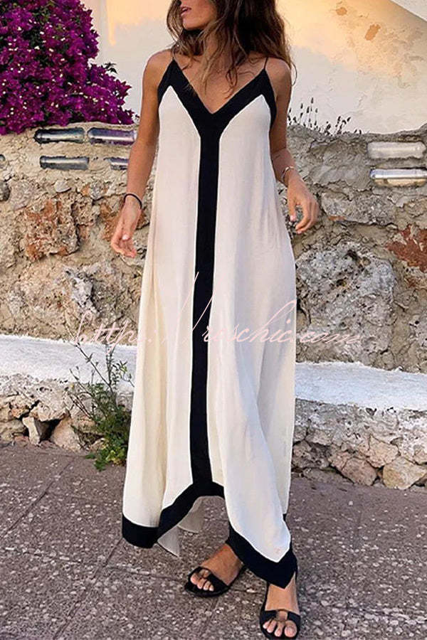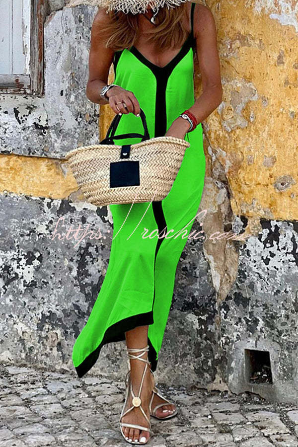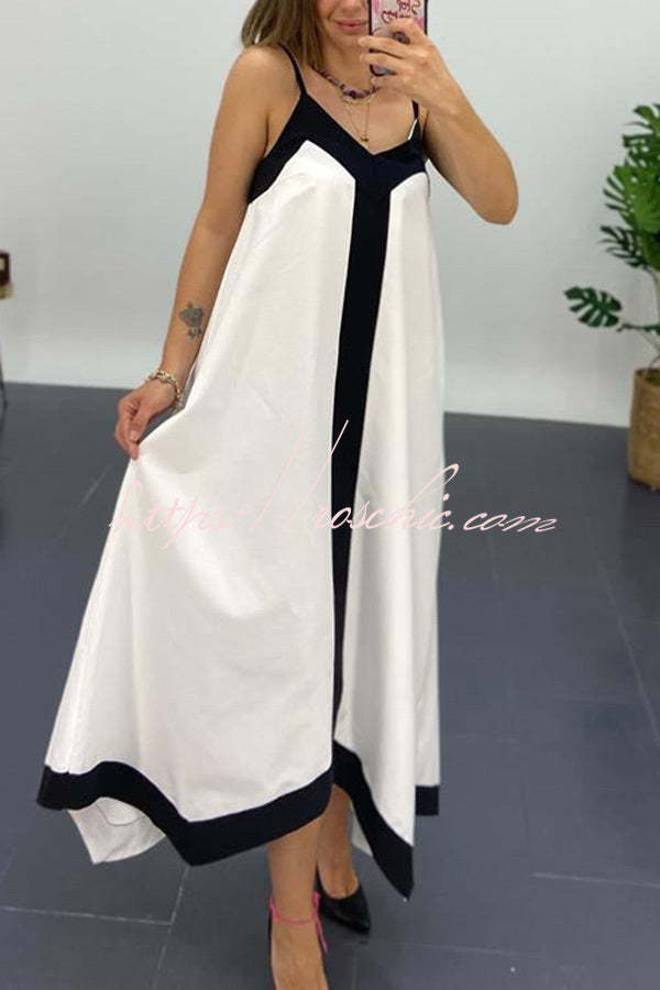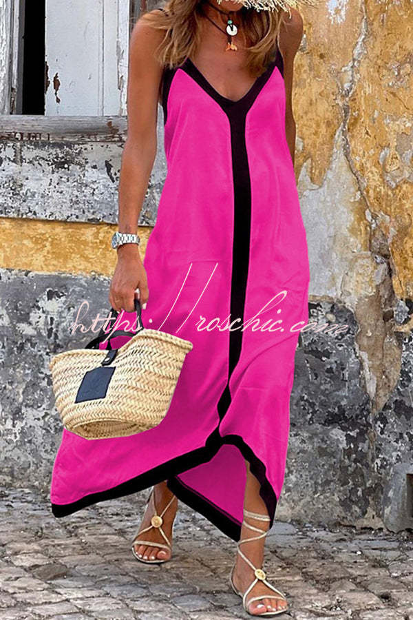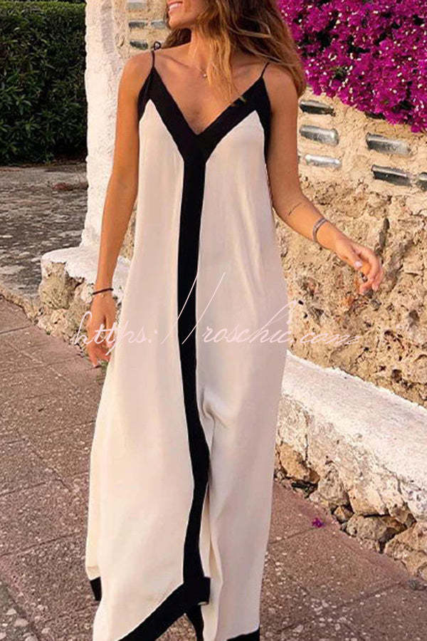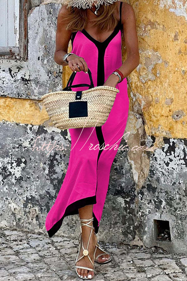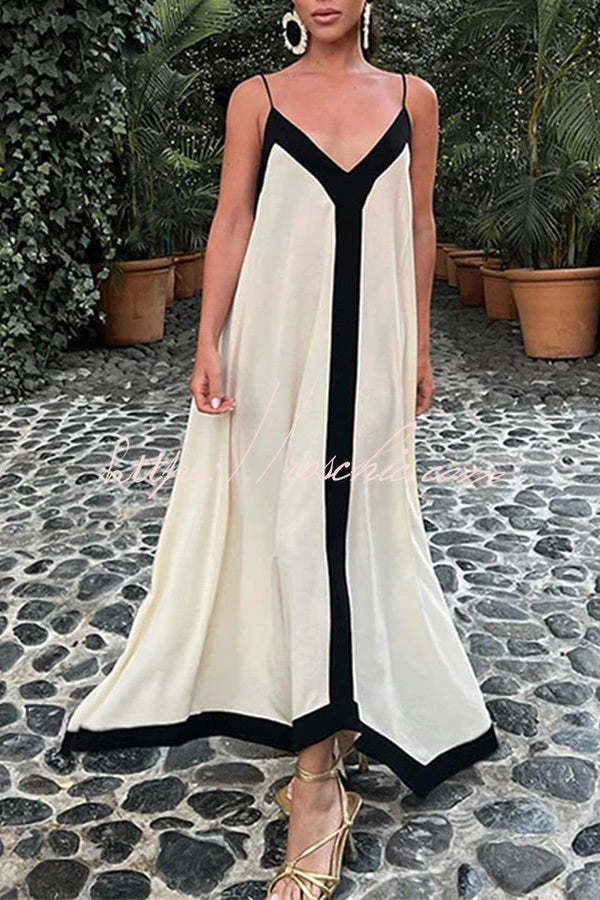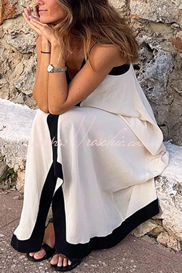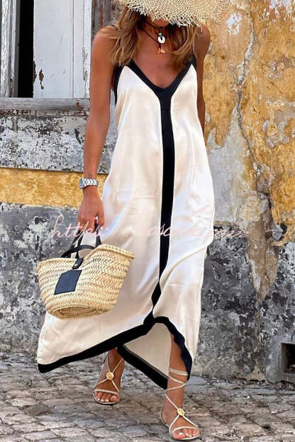 Traveling The Horizon Satin Colorblock Strap Loose Maxi Dress