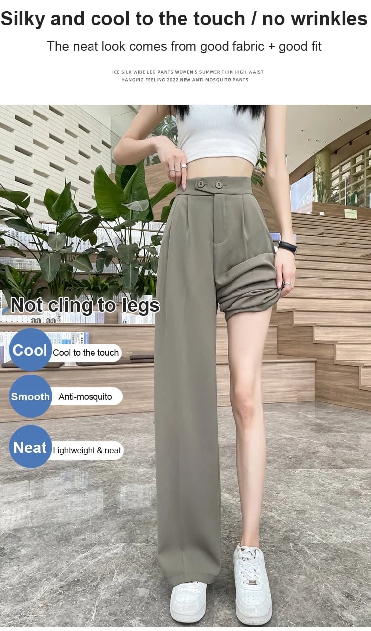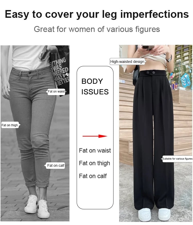 High-waisted wide-leg pants have an excellent cut that slims the curves of your legs and gives you a slender and elegant look. Its loose leg is not only comfortable and at ease but also allows you to walk more lightly and freely. Whether for everyday wear or formal occasions, these pants are an excellent choice.