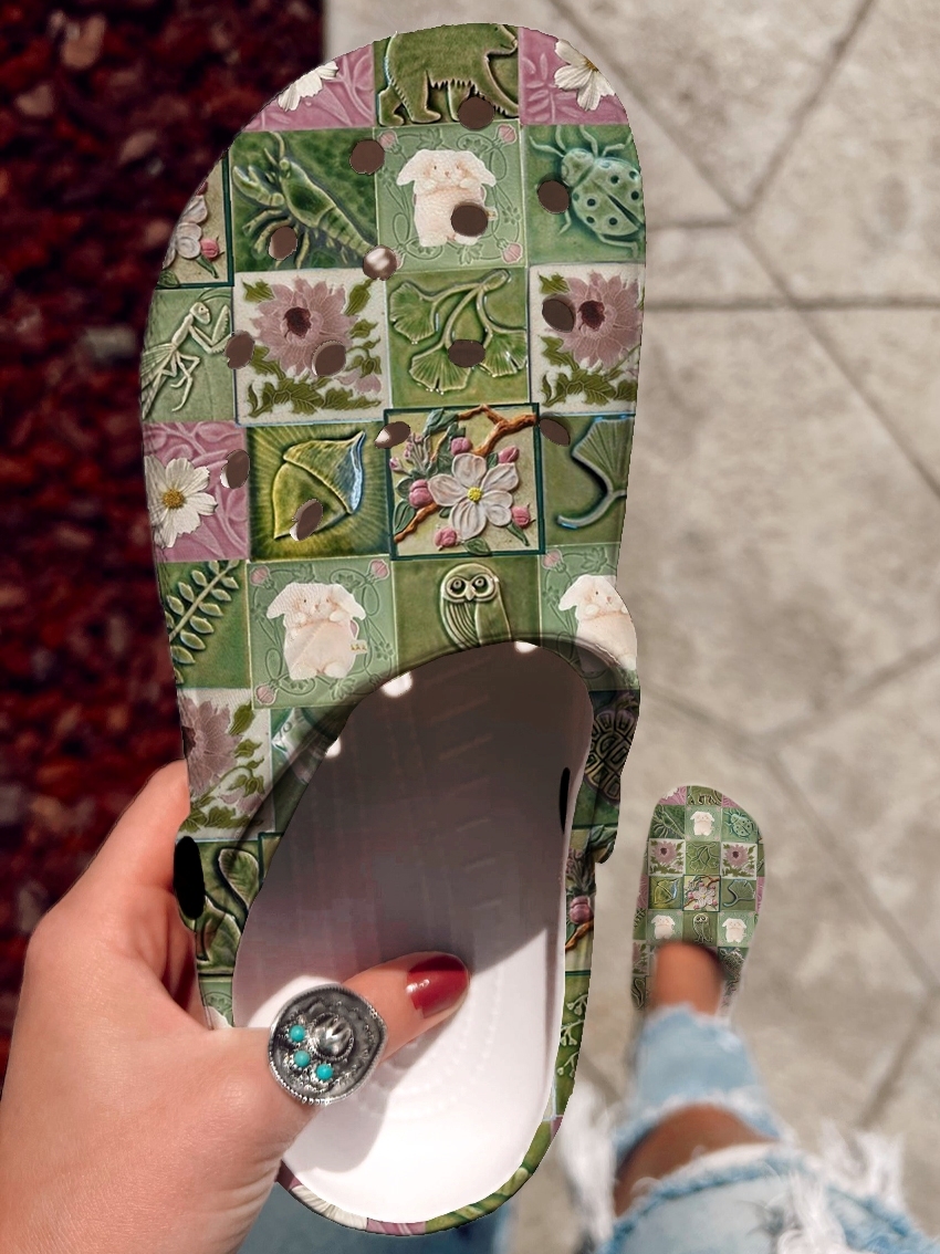 Floral Animal Patchwork Pattern Art Print Casual Hole Slippers