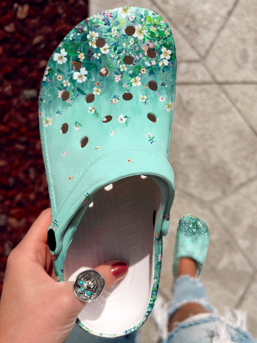 Floral Pattern Art Print Casual Hole Slippers