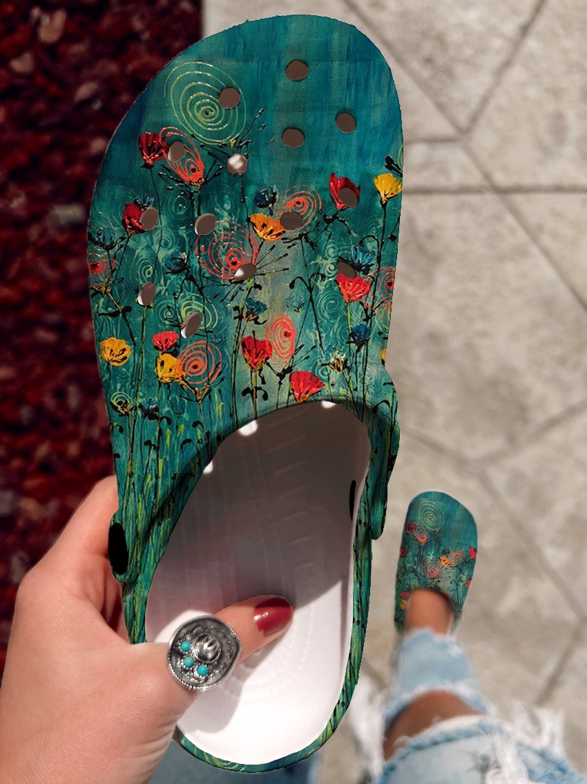 Floral Pattern Art Print Casual Hole Slippers