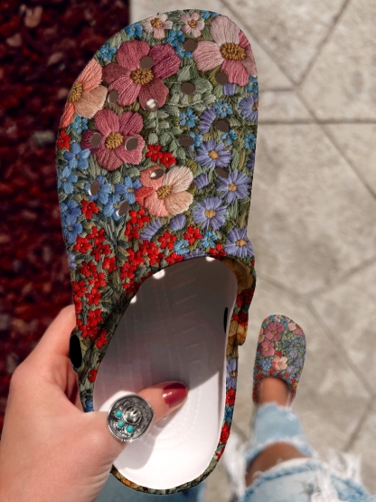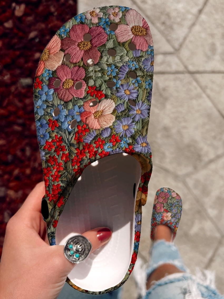 Floral Pattern Art Print Casual Hole Slippers