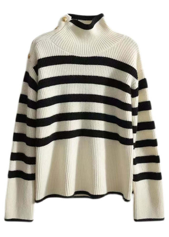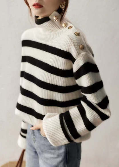 French Striped Turtleneck Patchwork Cozy Knit Sweaters Long Sleeve