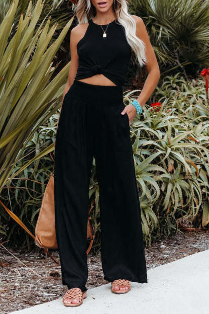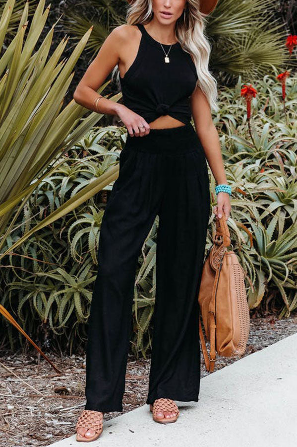 Fresh Air Linen Blend Pocketed Smocked Pants