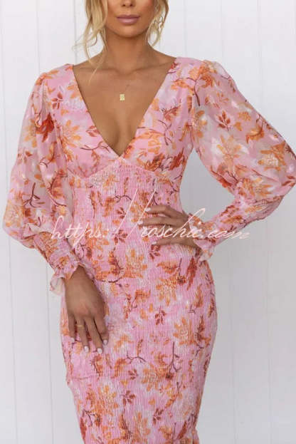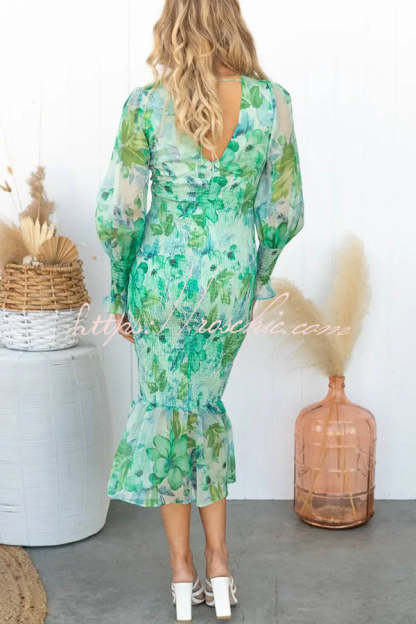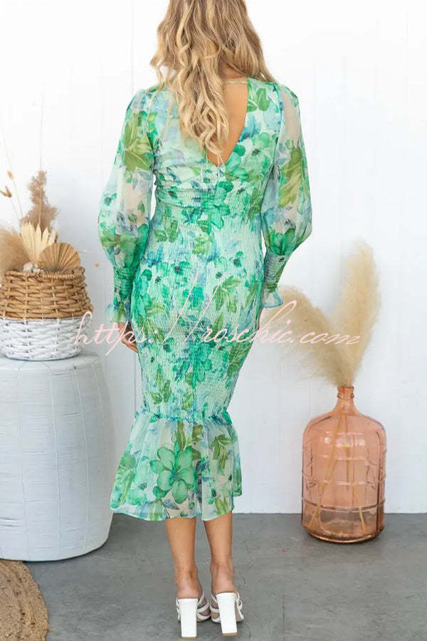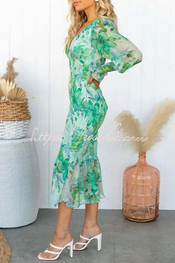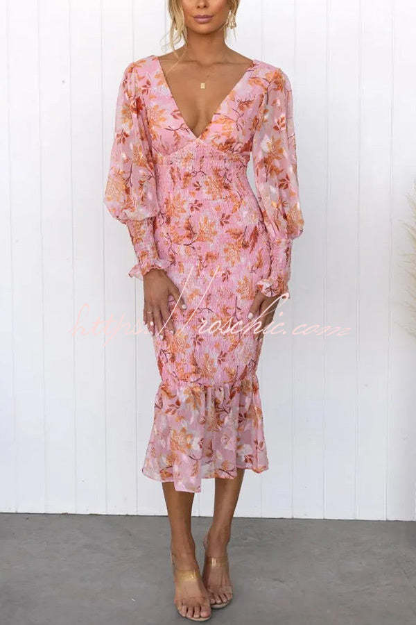 Garden Gathering Floral Smocked Waist Midi Dress