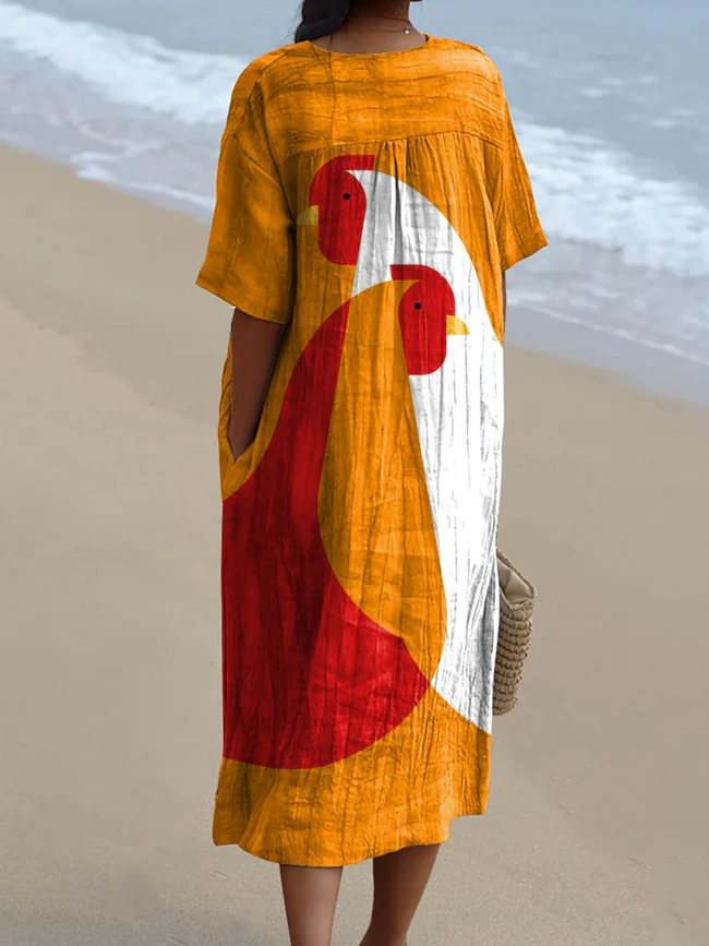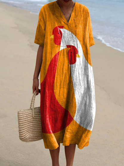 Geometric Chicken Art Printed Women's Flowy Dress