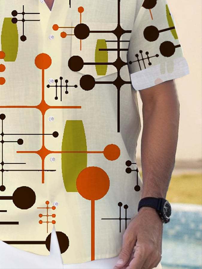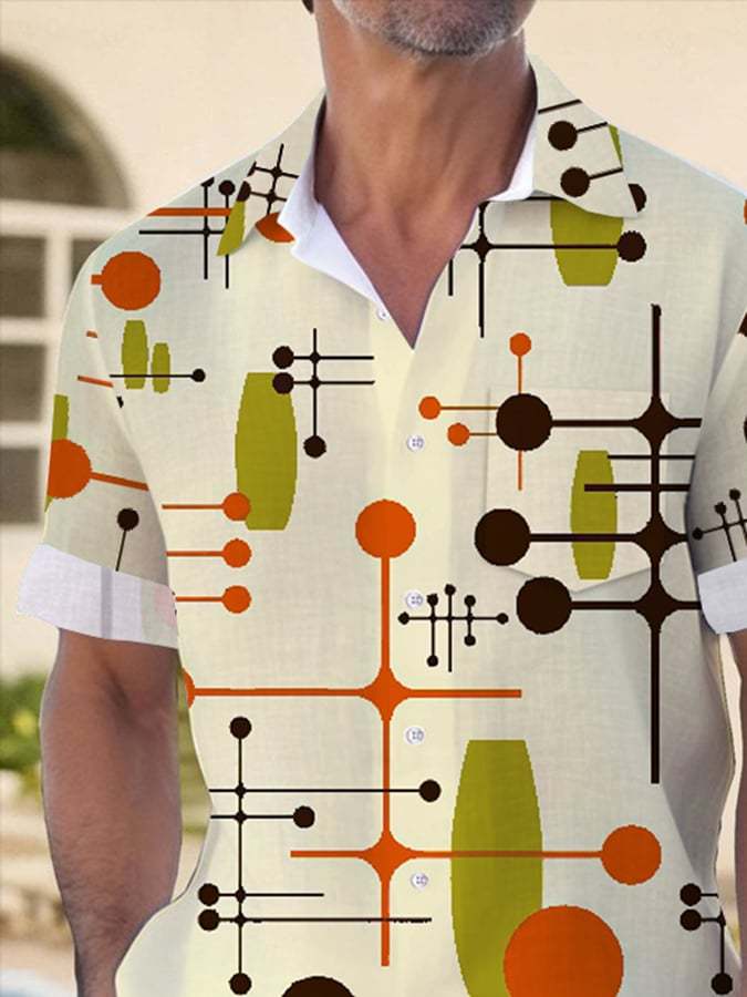 Geometric Print Fashion Lapel Short Sleeve Shirt