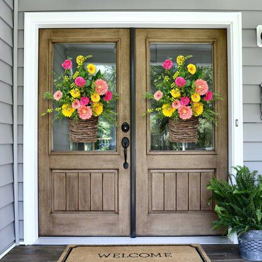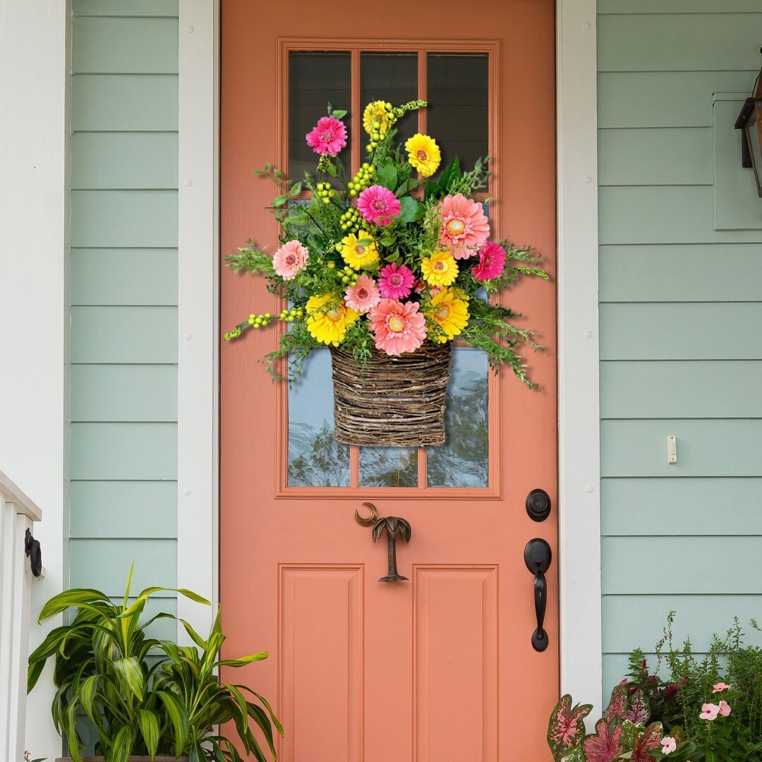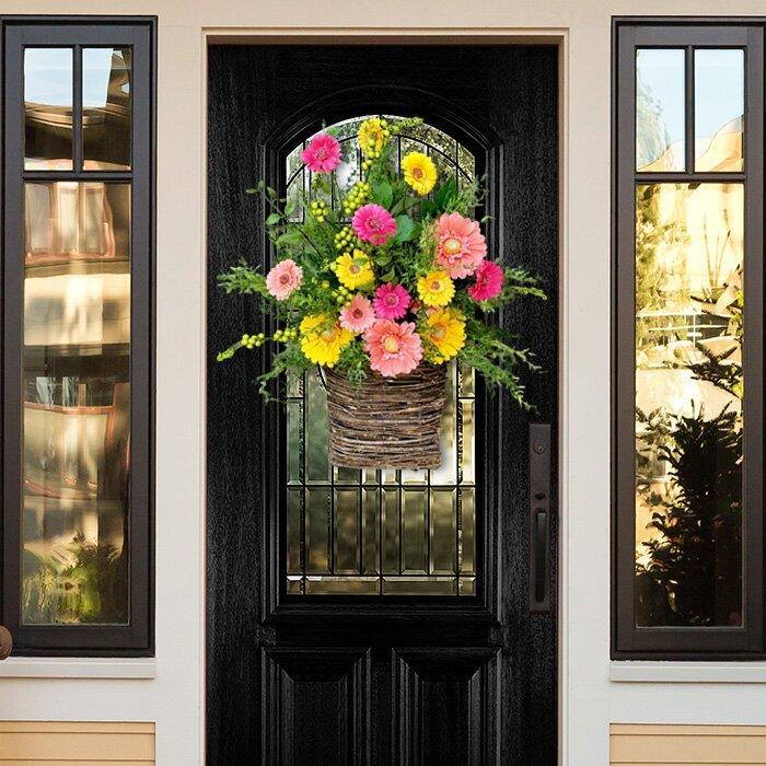 Beautiful indoor or outdoor decor: Add charm to your holiday with this gerbera door basket. Celebrate the holidays with this fabulous front door wreath, a lively and lovely summer wreath that will add lots of buzz.