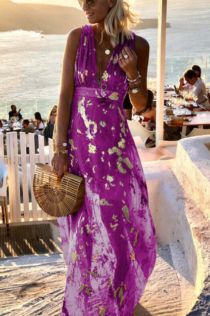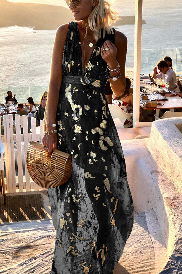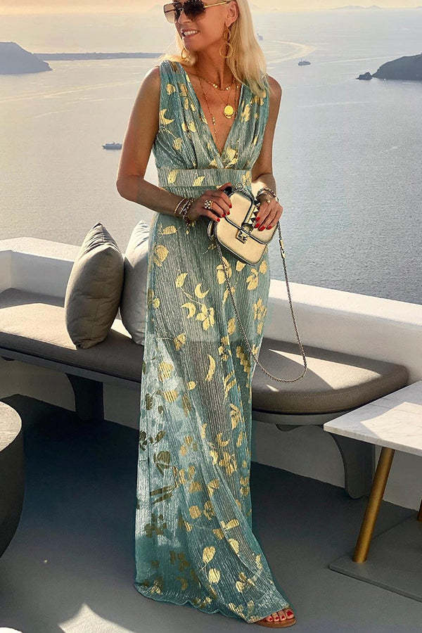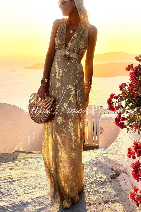 Golden Sunset Sequin Stories V-neck Maxi Dress