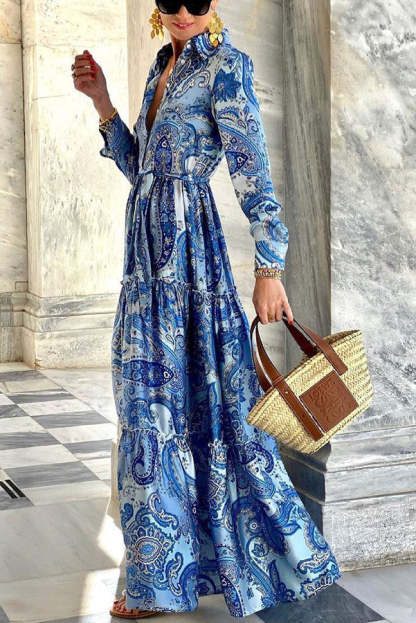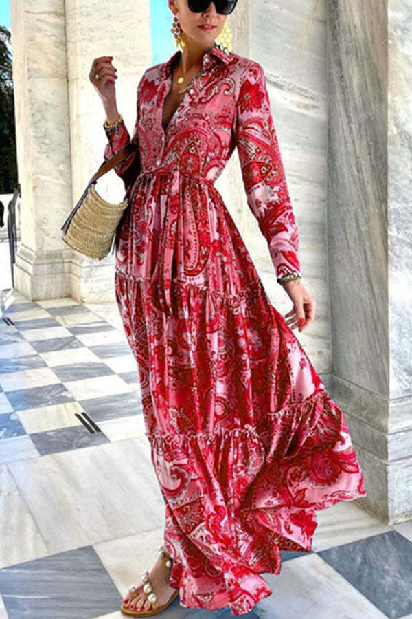Gracefully Yours Paisley Floral Shirt Maxi Dress