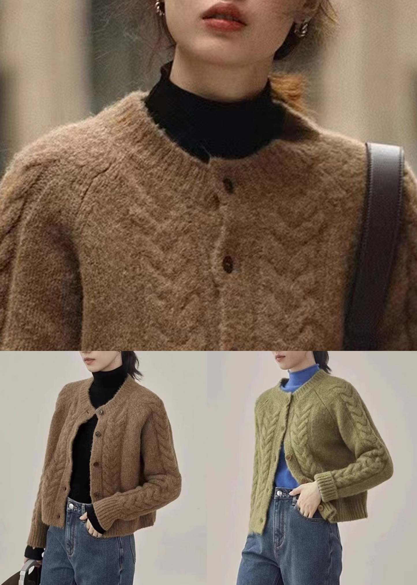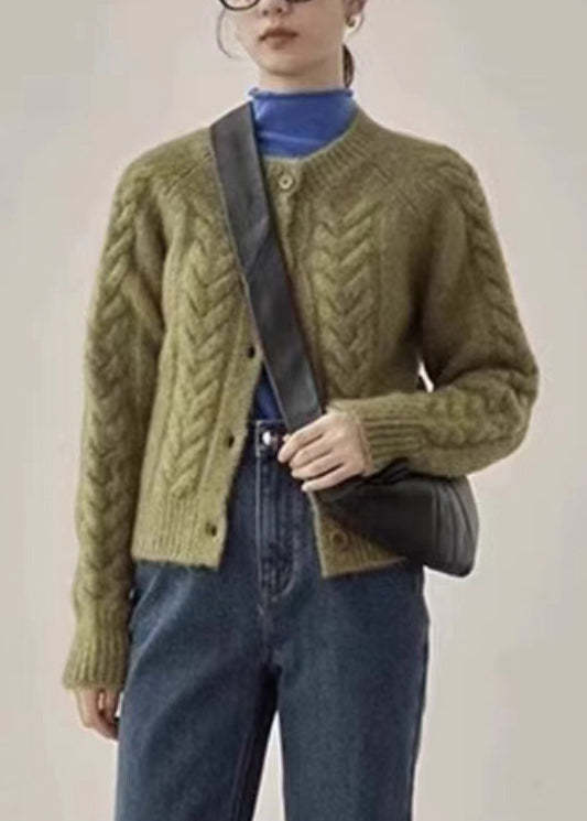 Green Cable Knit Sweaters Knit Coats O Neck Long Sleeve