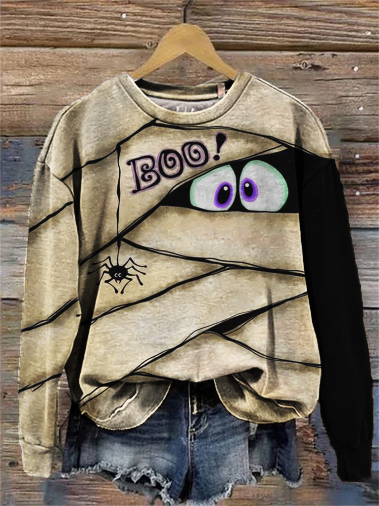 Halloween Boo Mummy Inspired Contrast Washed Sweatshirt