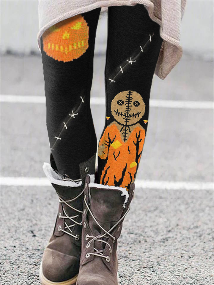 Halloween Cartoon Pumpkin Monster Casual Leggings